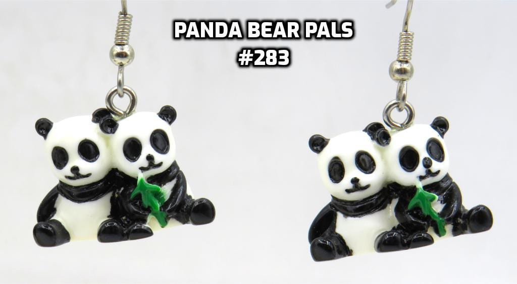 *3-D Hand-painted White & Black Panda Bear Pals Resin 16x23mm Bead Earrings