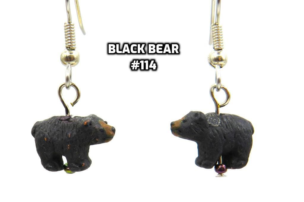 *3-D Hand-painted Black Bears Ceramic 9x14mm Bead Earrings