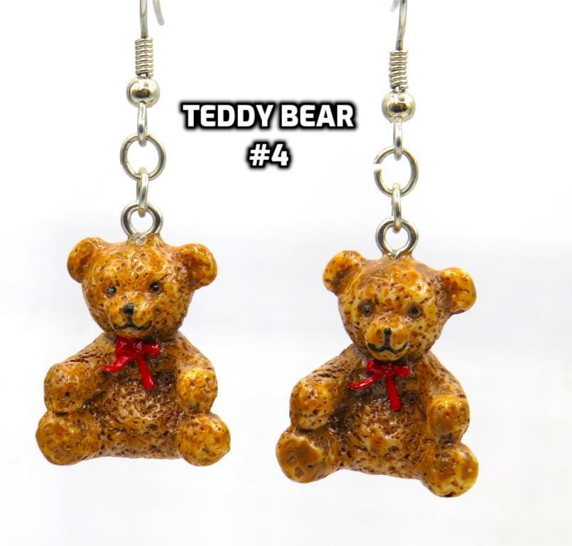 *3-D Hand-painted Brown Teddy Bear Resin 17x21mm Bead Earrings