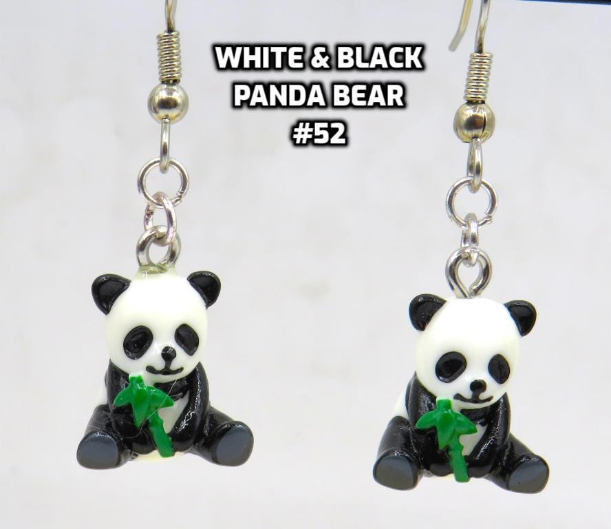 *3-D Hand-painted White & Black Panda Bear Resin 13x15mm Bead Earrings