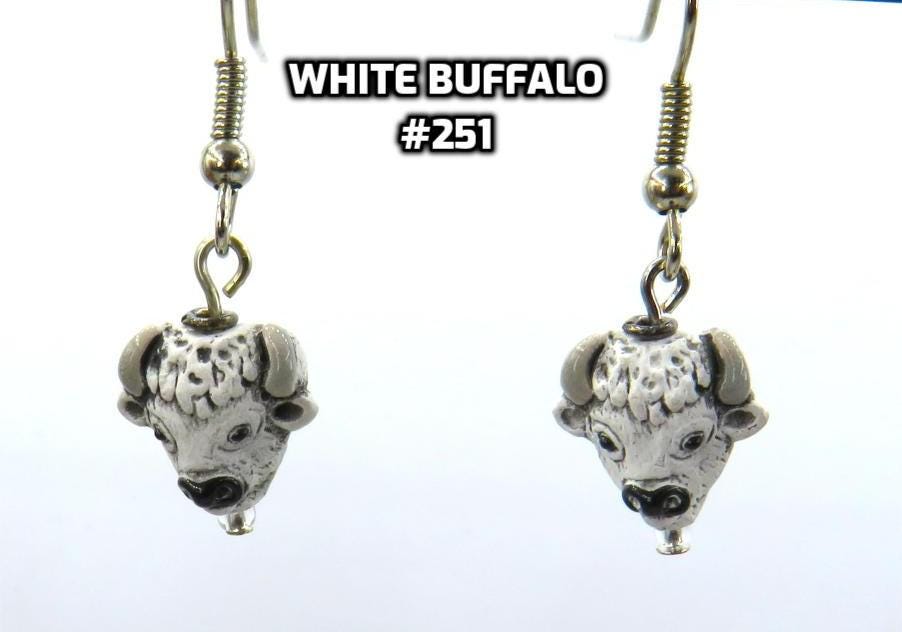 *3D Hand Painted American White Buffalo Head (Bison) 11x13mm Bead Earrings Charms