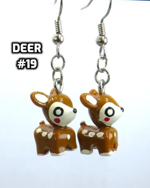 *3D Hand Painted Deer 12x18mm Resin Bead Earrings