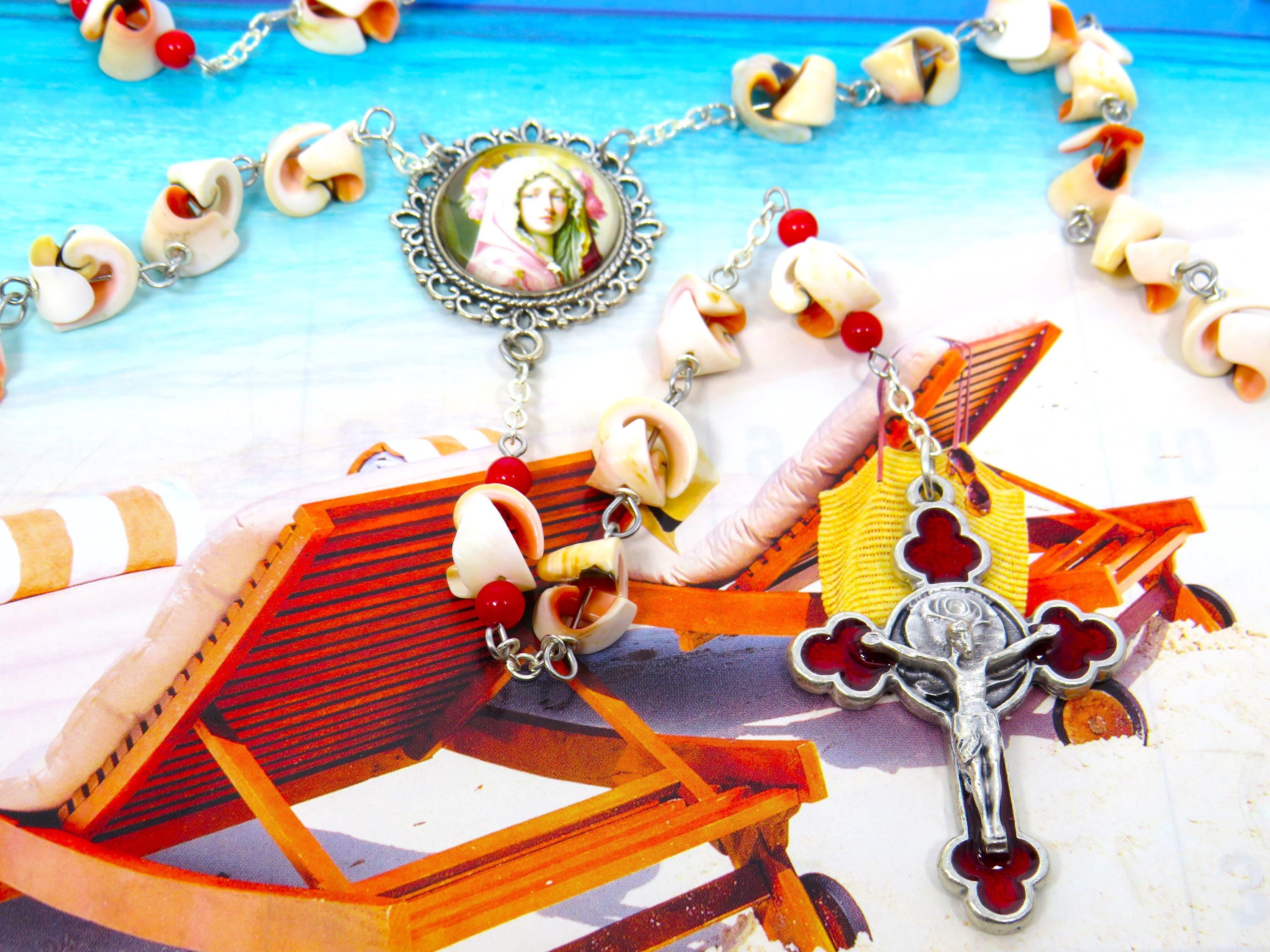*Natural Red Everlasting Seashell Rosary