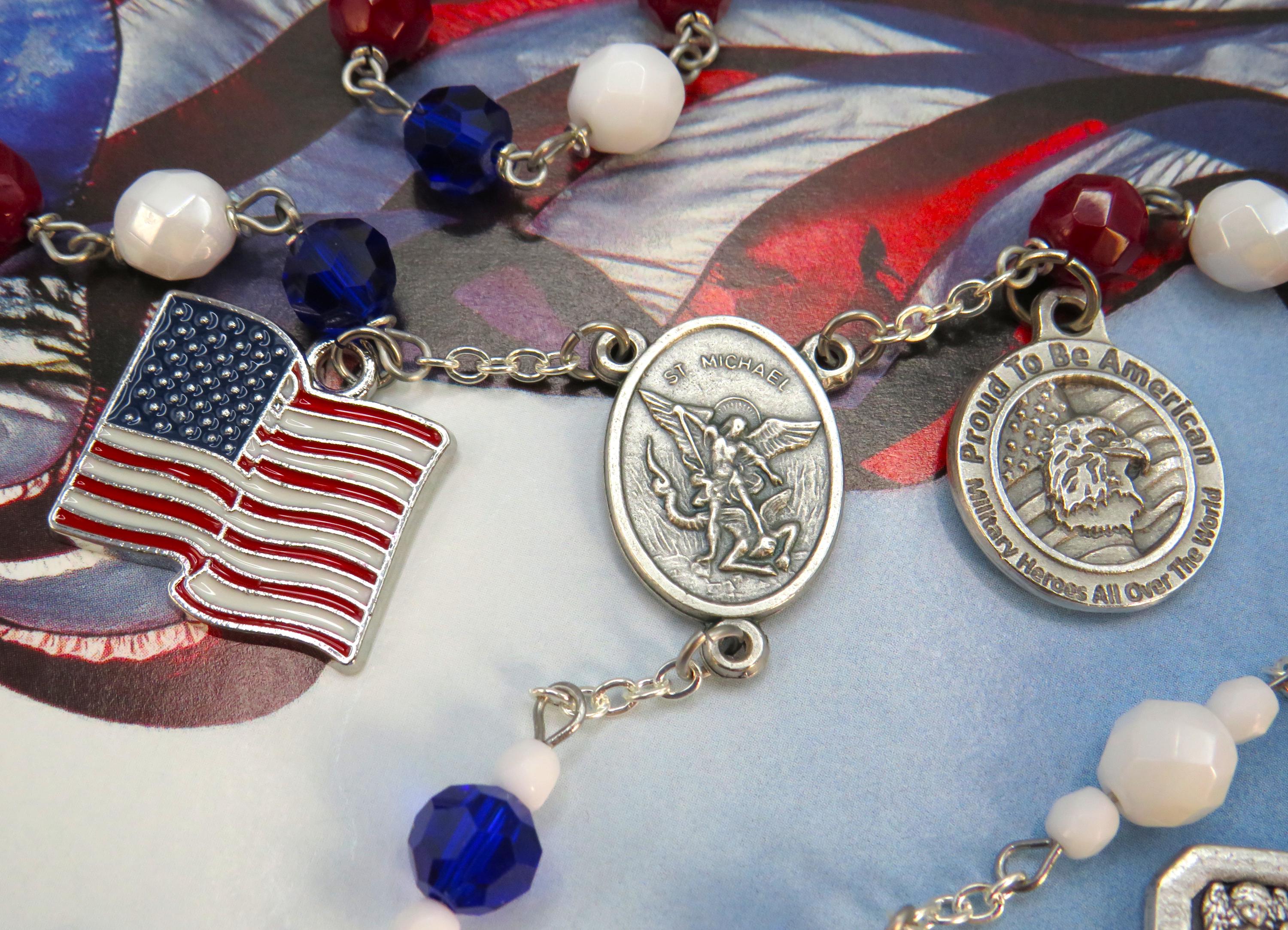 *Italian Silver Proud To Be American with St Michael (Back) Charm