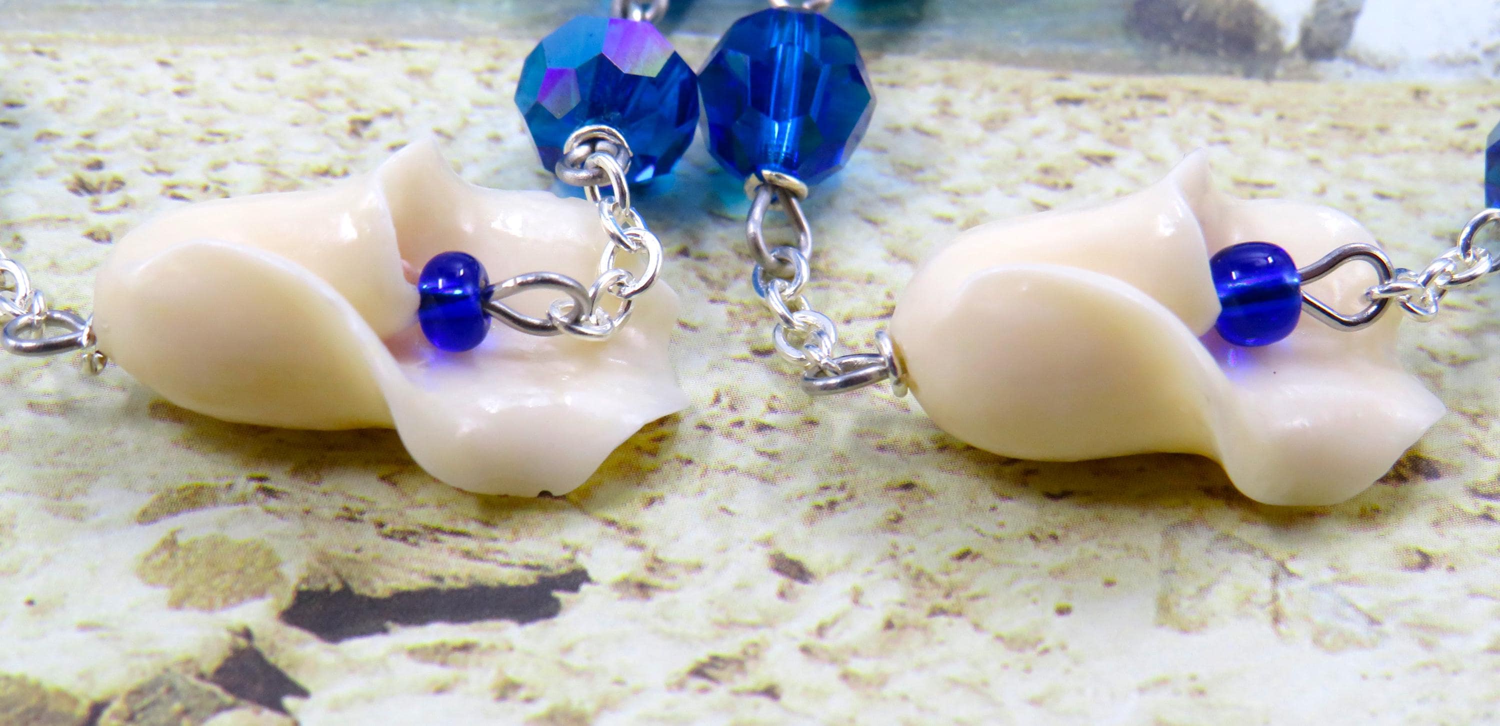 *Ivory Calla Lily 14x24mm Stone Flower Father Beads with Czech 4mm Blue Bud Crystal