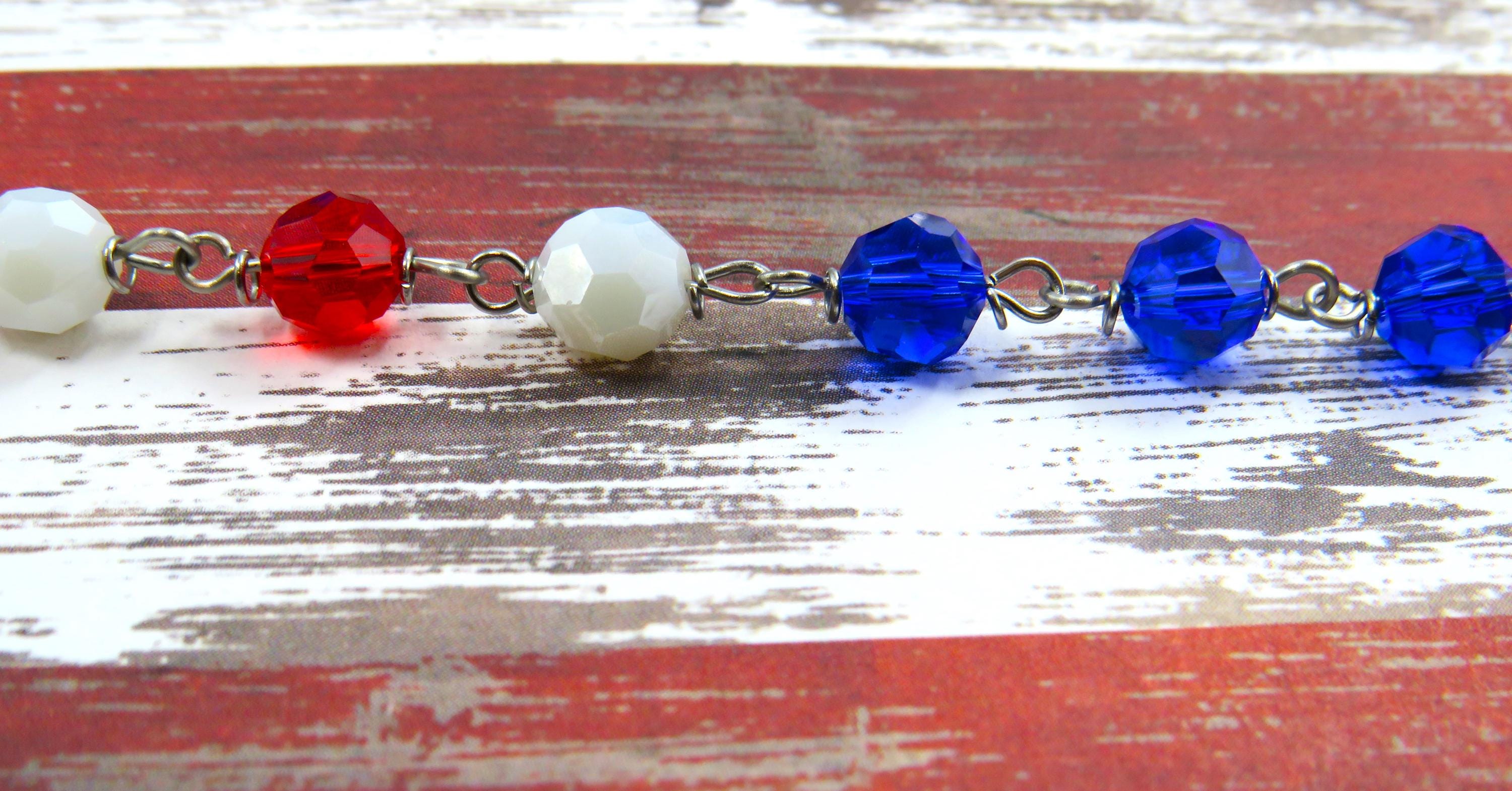 *Czech Blue, Red and White 8mm Crystal Beads