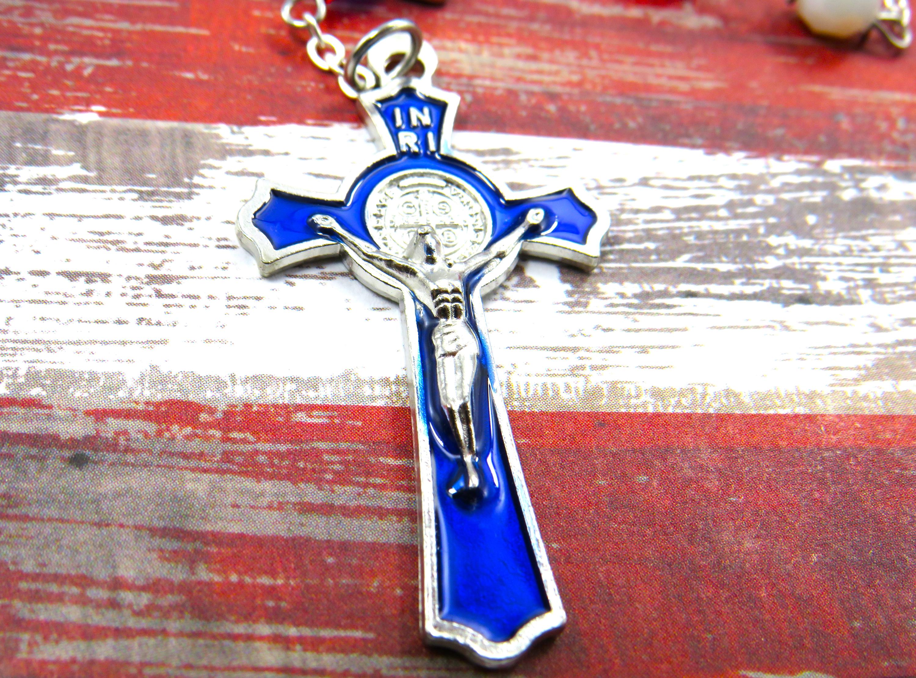 *St Benedict Blue Enameled Crucifix