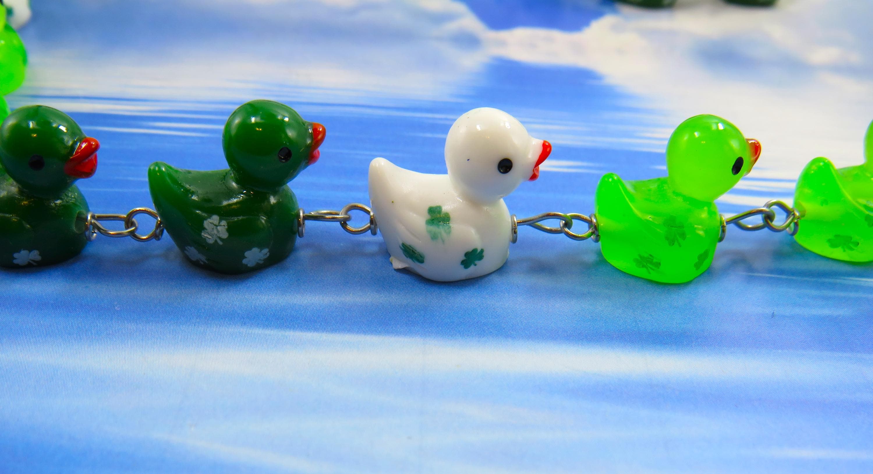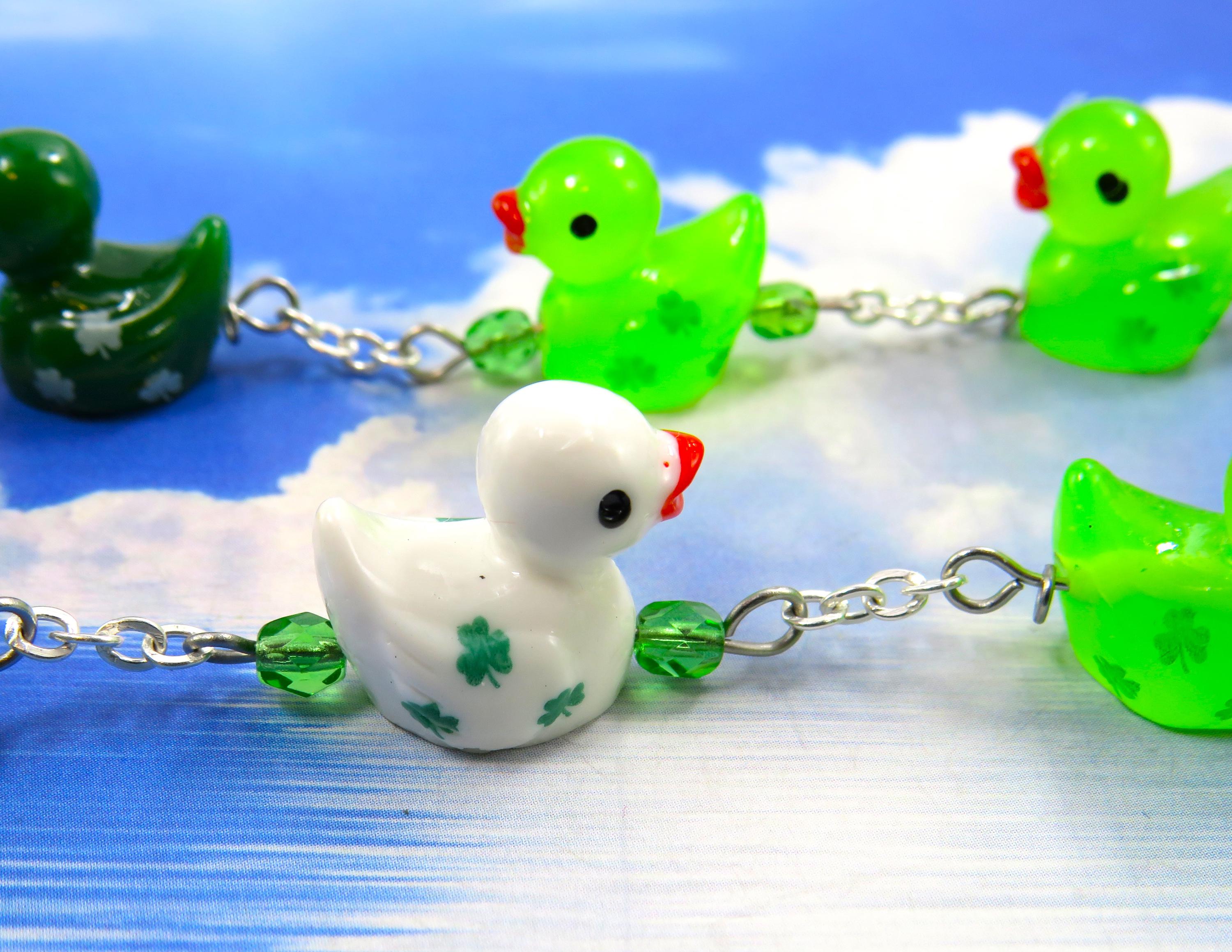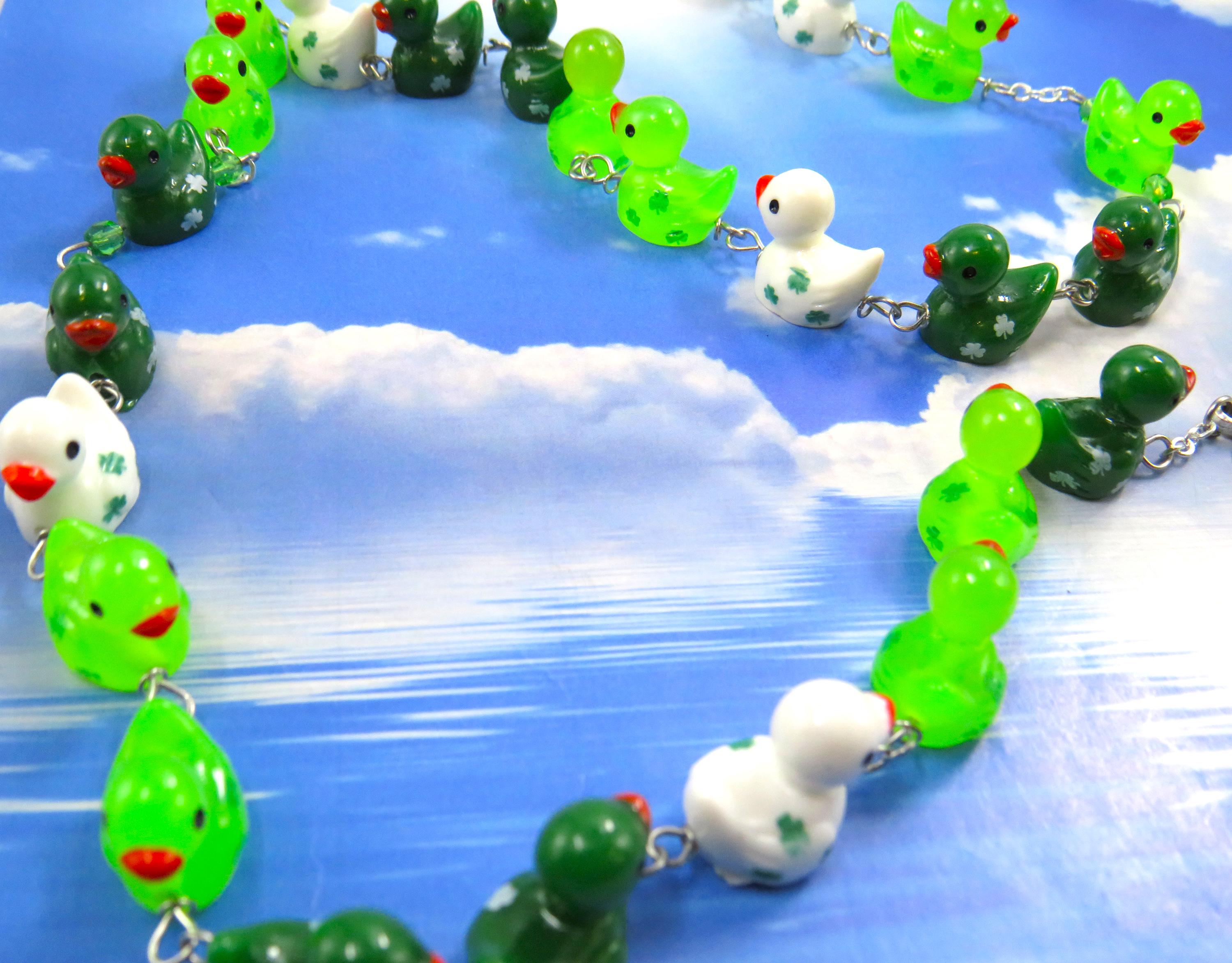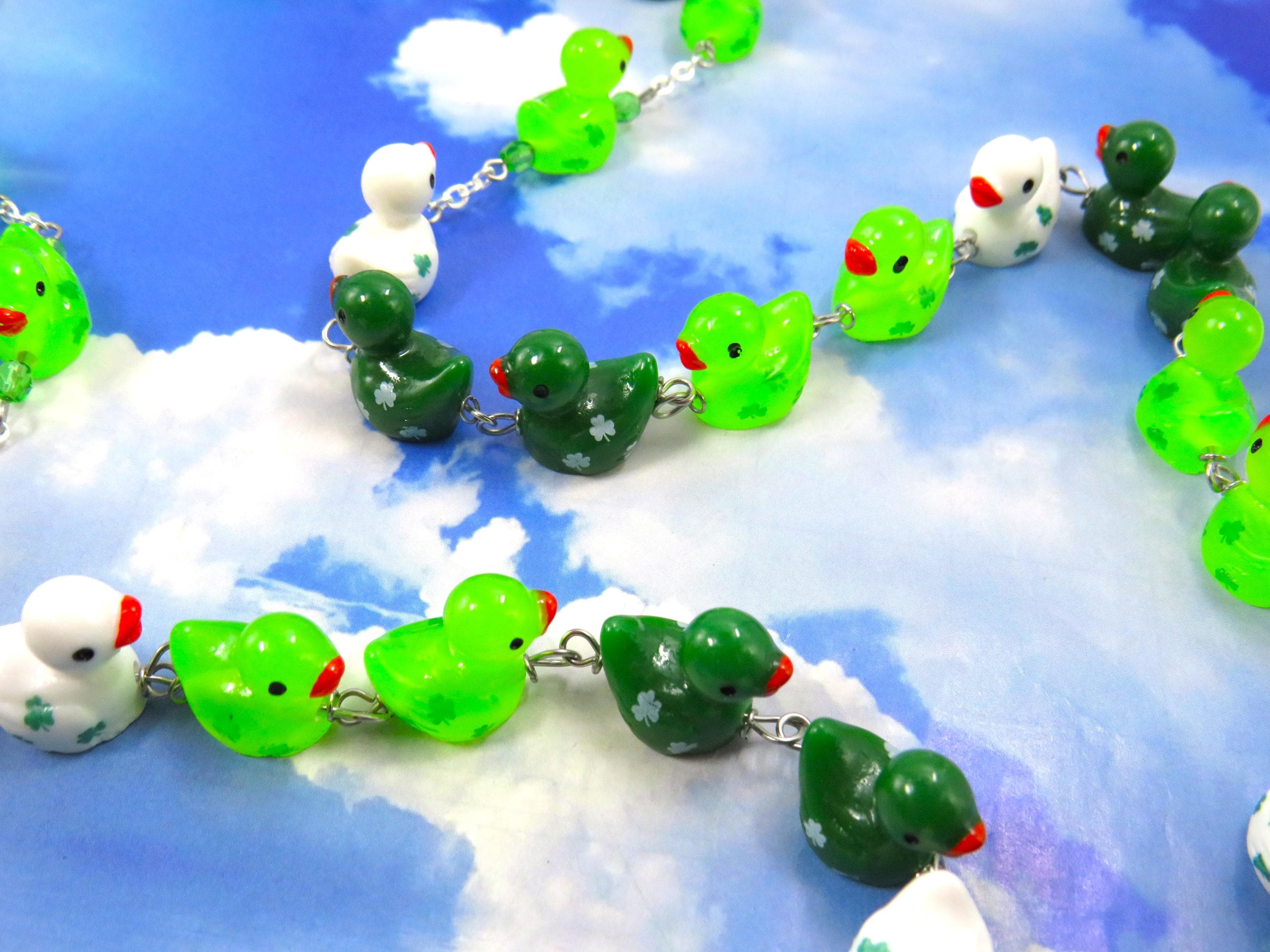 *Hand-Painted 16x18mm Light Green, Dark Green and Color Resin Duck Beads with Shamrocks