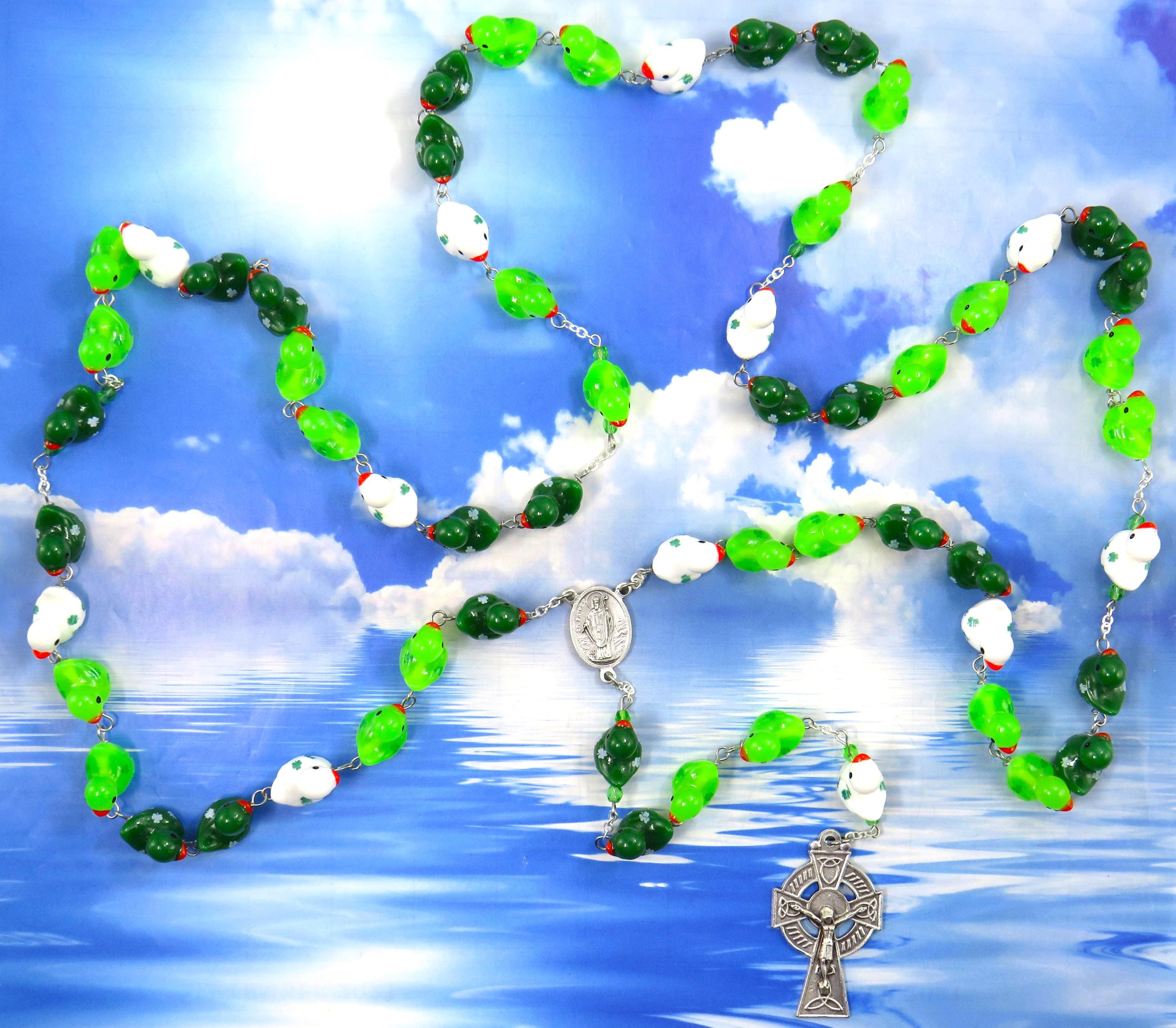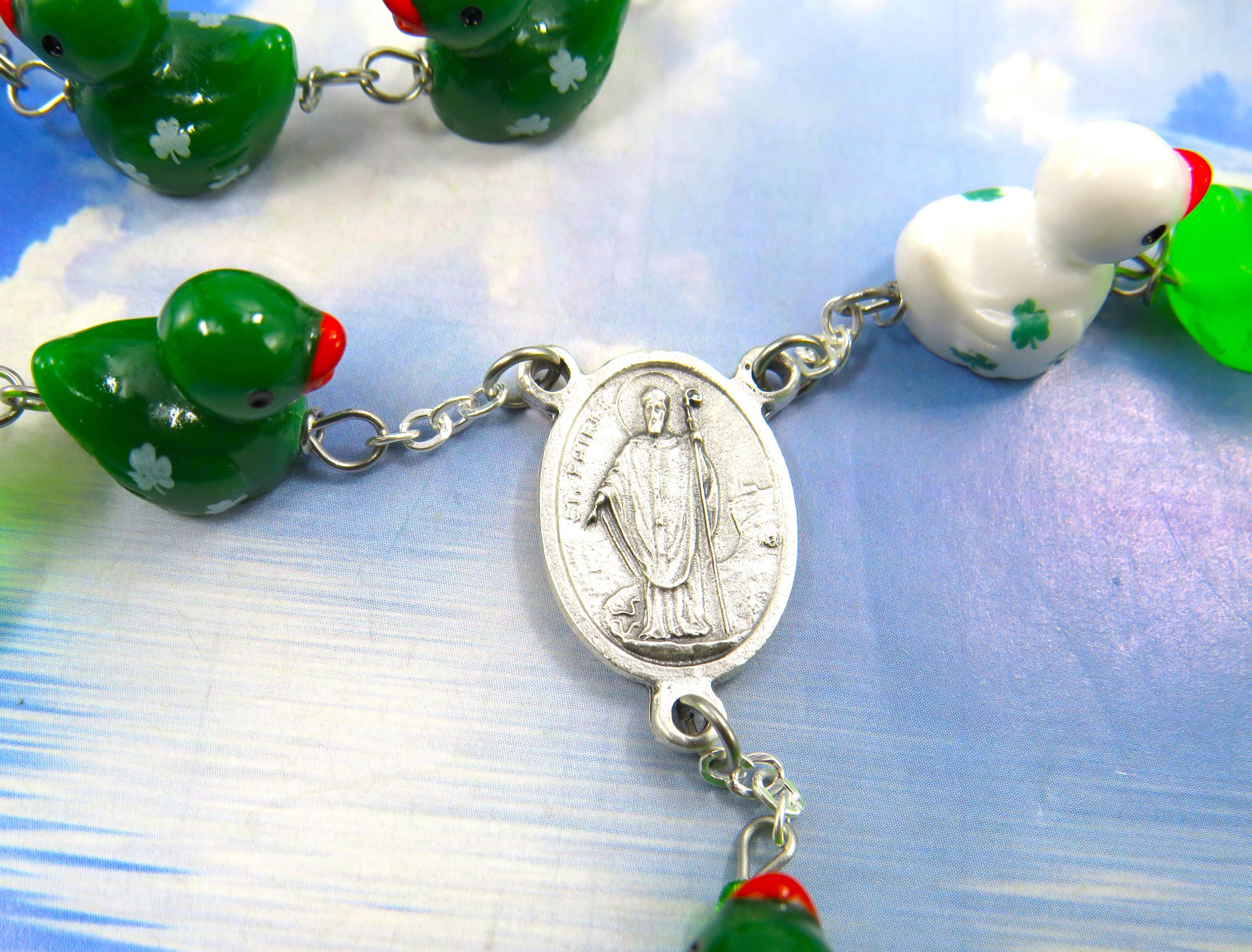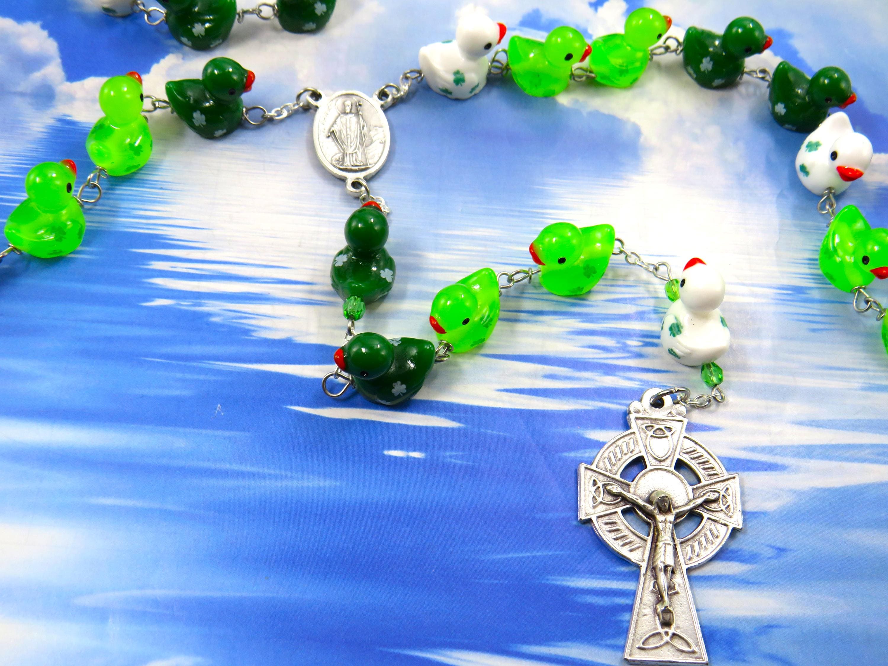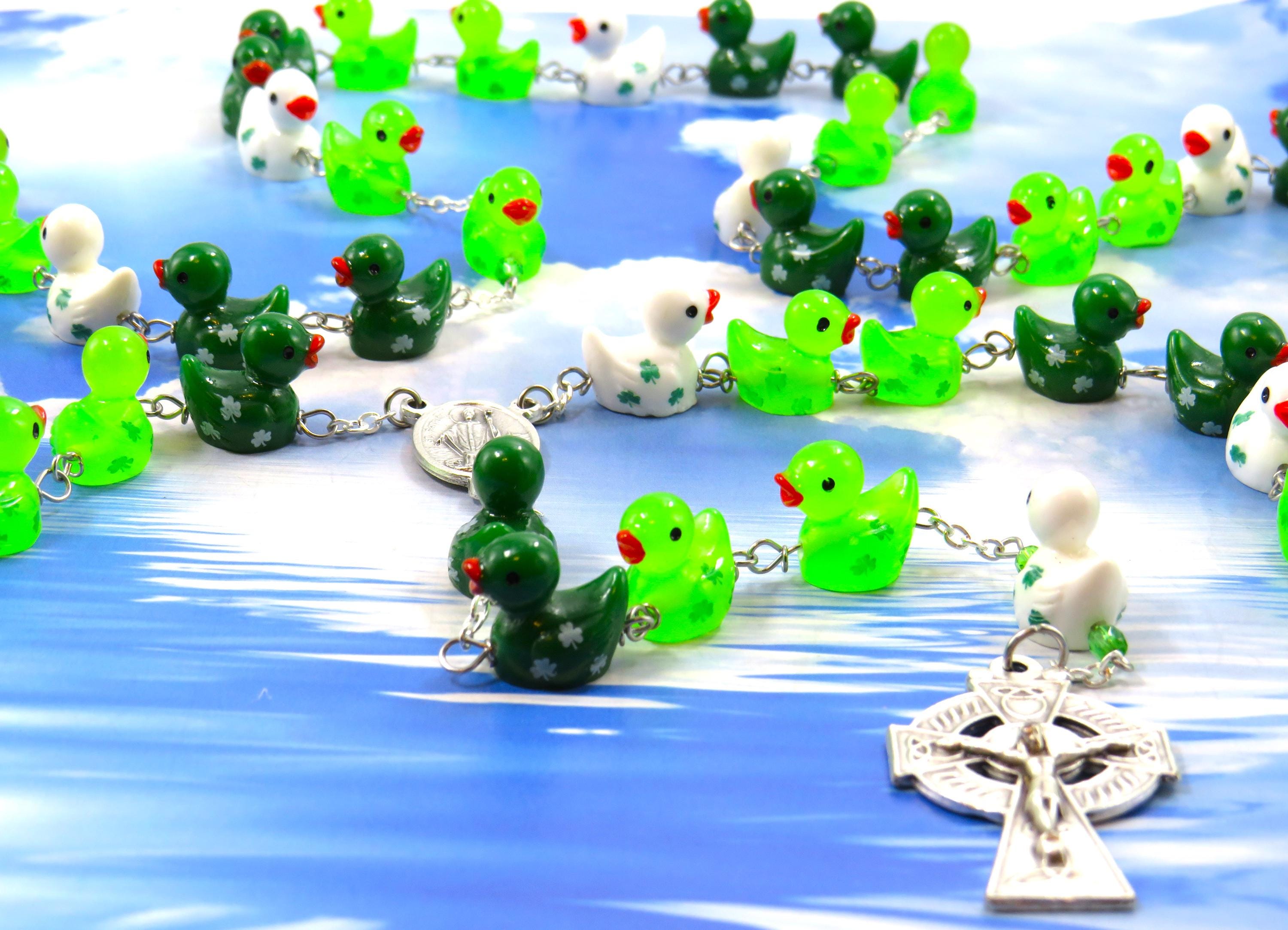 *Hand-Painted 16x18mm Light Green, Dark Green and Color Resin Duck Beads with Shamrocks