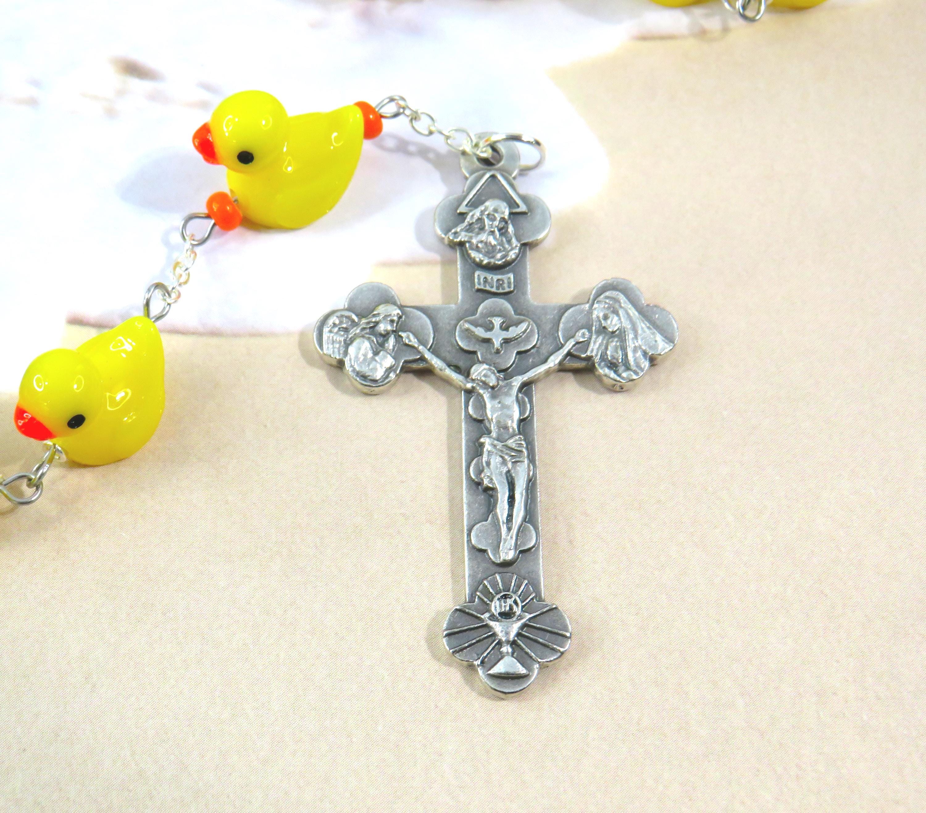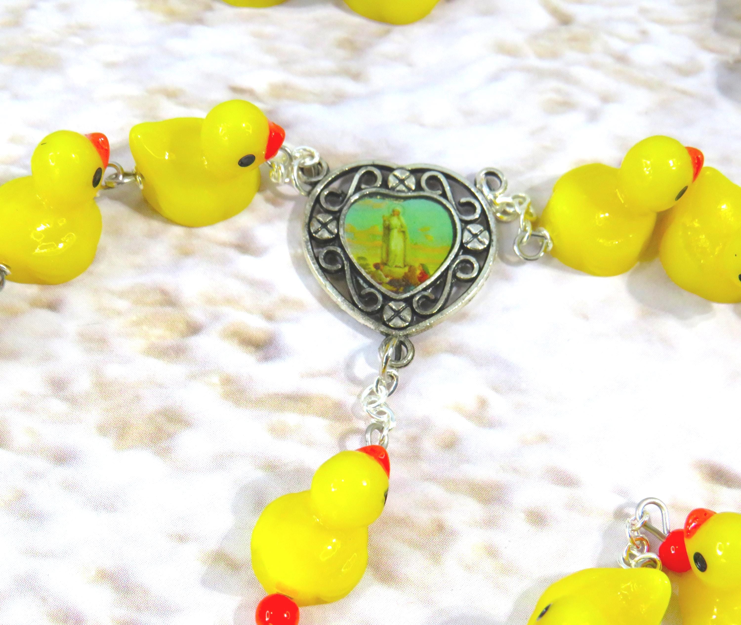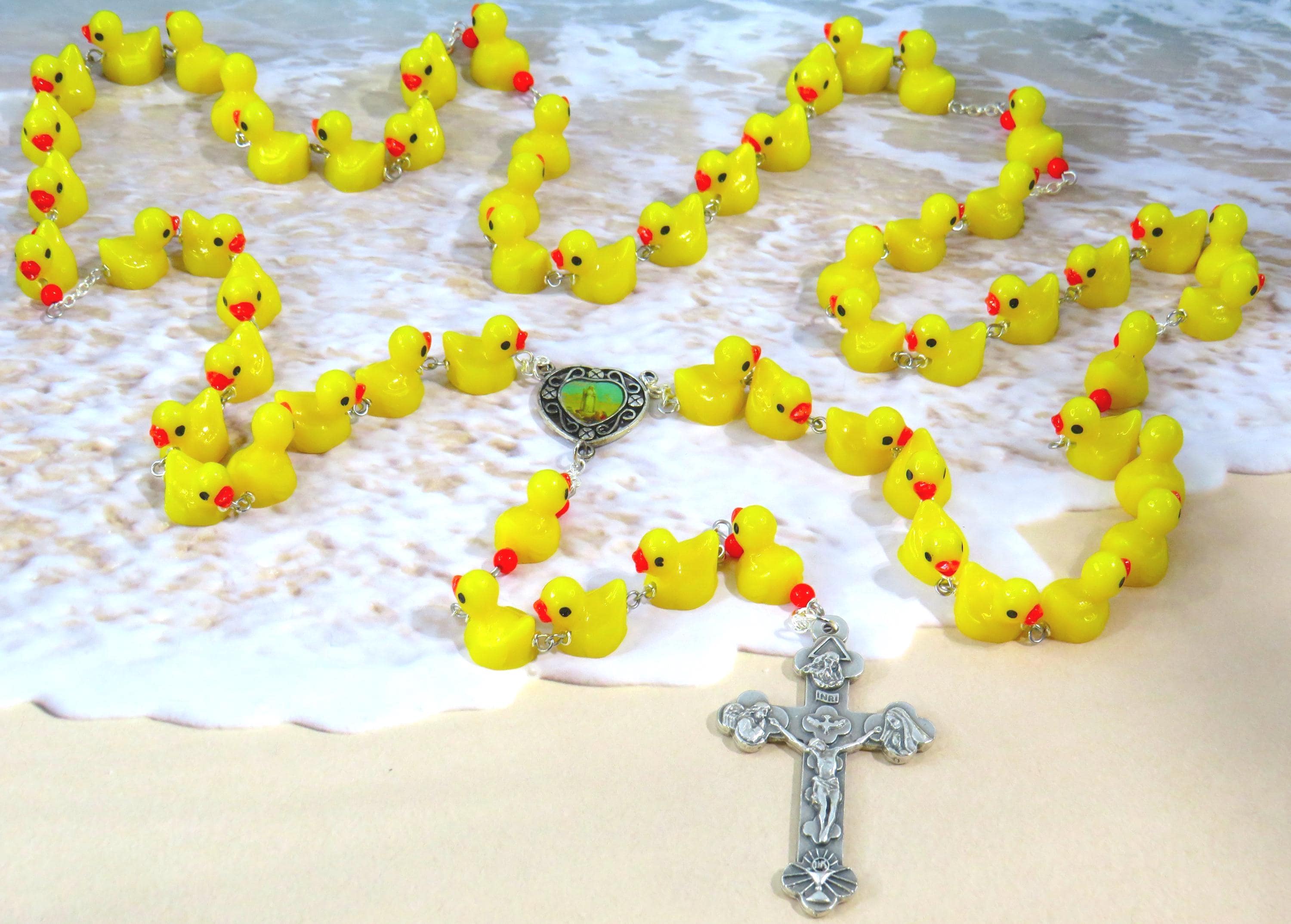 I'mm not catholic, but I LOVE rosaries. I like holding them in my hand when I pray. I had a horrible accident a few years ago, and all that morning I heard my grandmother's voice to bring the rosary she had given me for my collection. I took it with me, and know she was there protecting me during that time. I ended up buying a jeep after that, as my car was totalled. We give each other ducks to brighten people's day. I have kept a rosary in my all cars since my accident. This one is PERFECT for my jeep and know it will keep me safe while I'm riding trails and climbing mountains! Thanks so much!