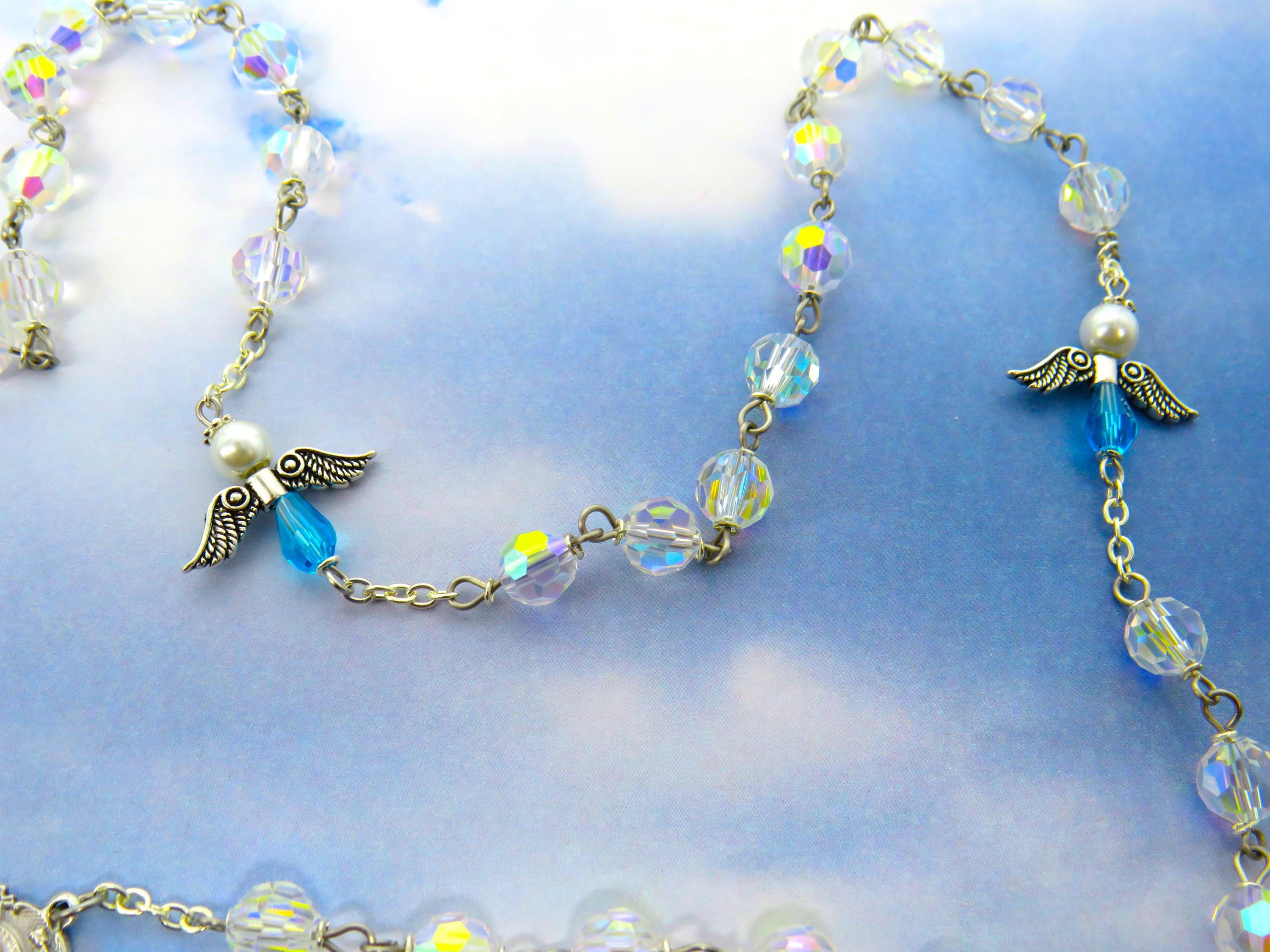 I was so elated when my crystal angel rosary arrived earlier and in just "awe" over its beauty more than i ever expectedl. The craftsmenship Is to be commended for its overall lasting quality. I love it just what i wanted & more! Thank uou so much!