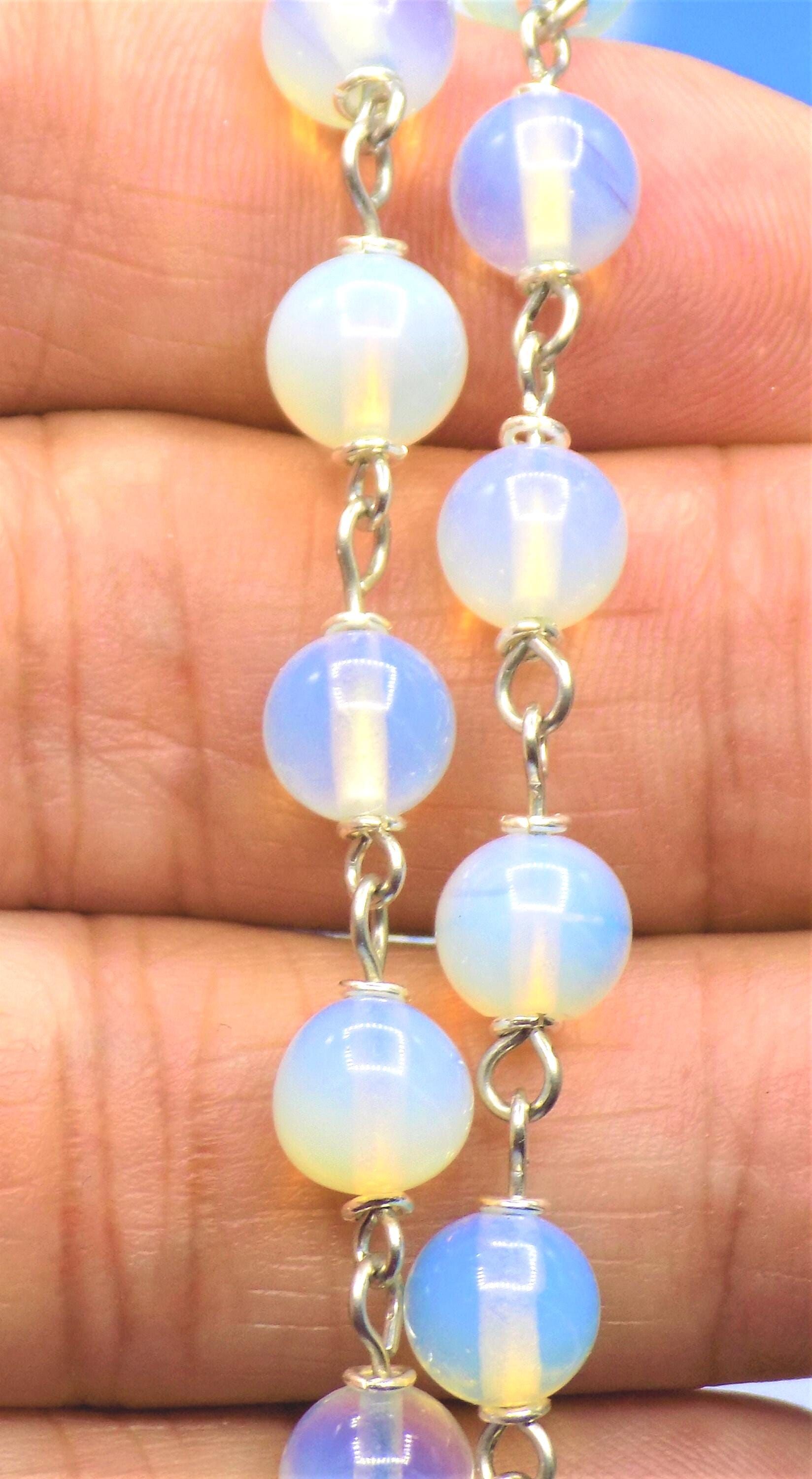 *When Sea Opal glass is placed against a dark background, it appears to have a blue color. When placed against a light background, it is milky white with an orange or pink glow.