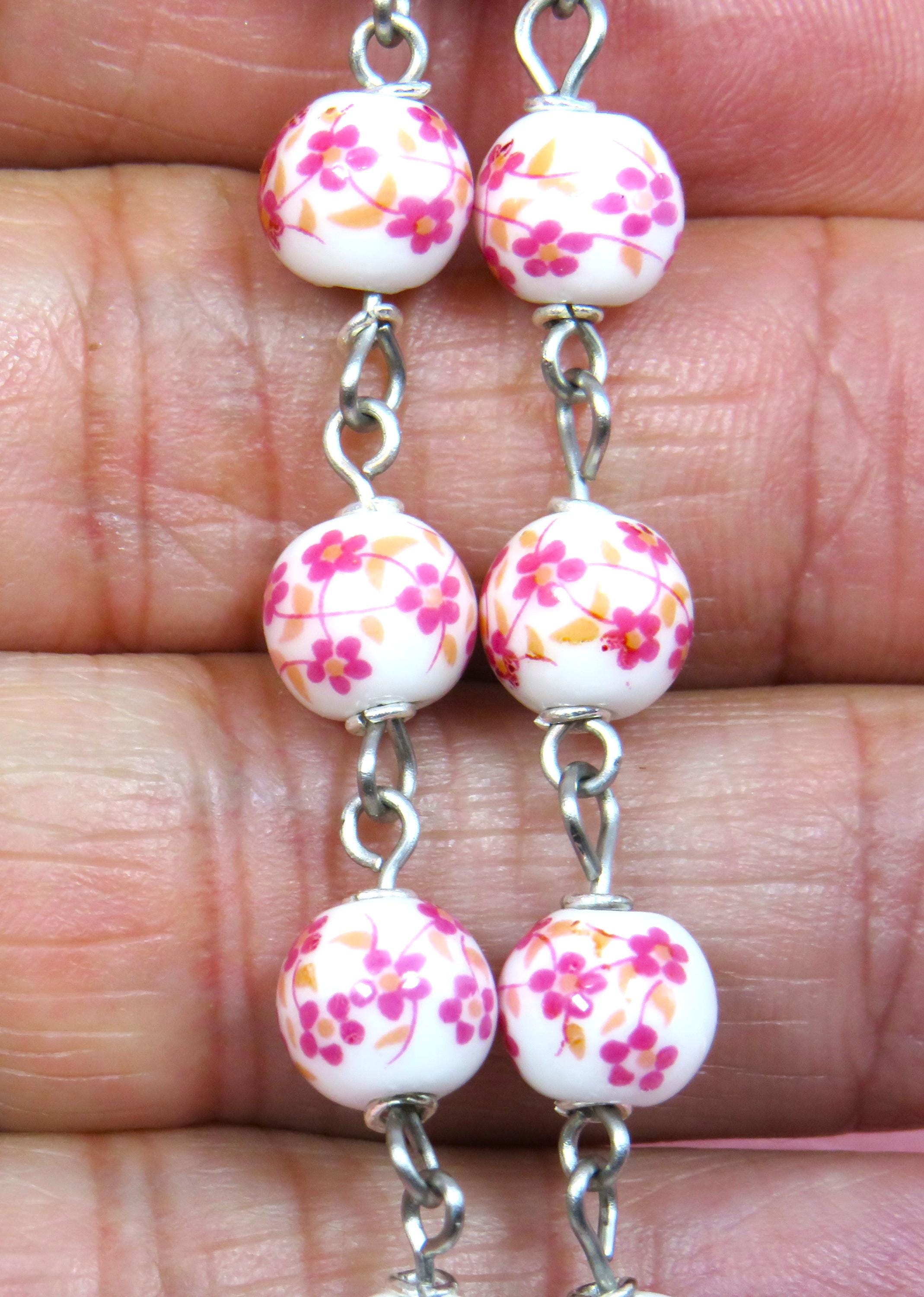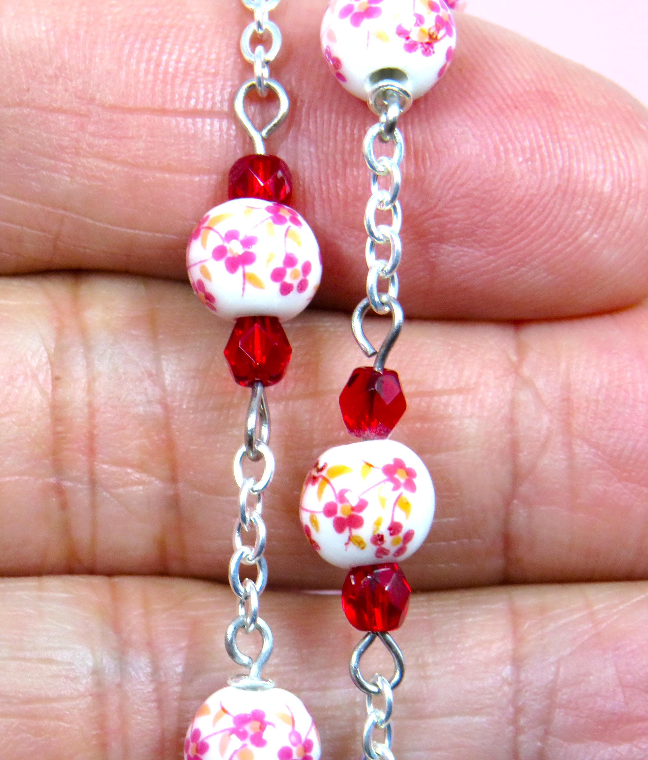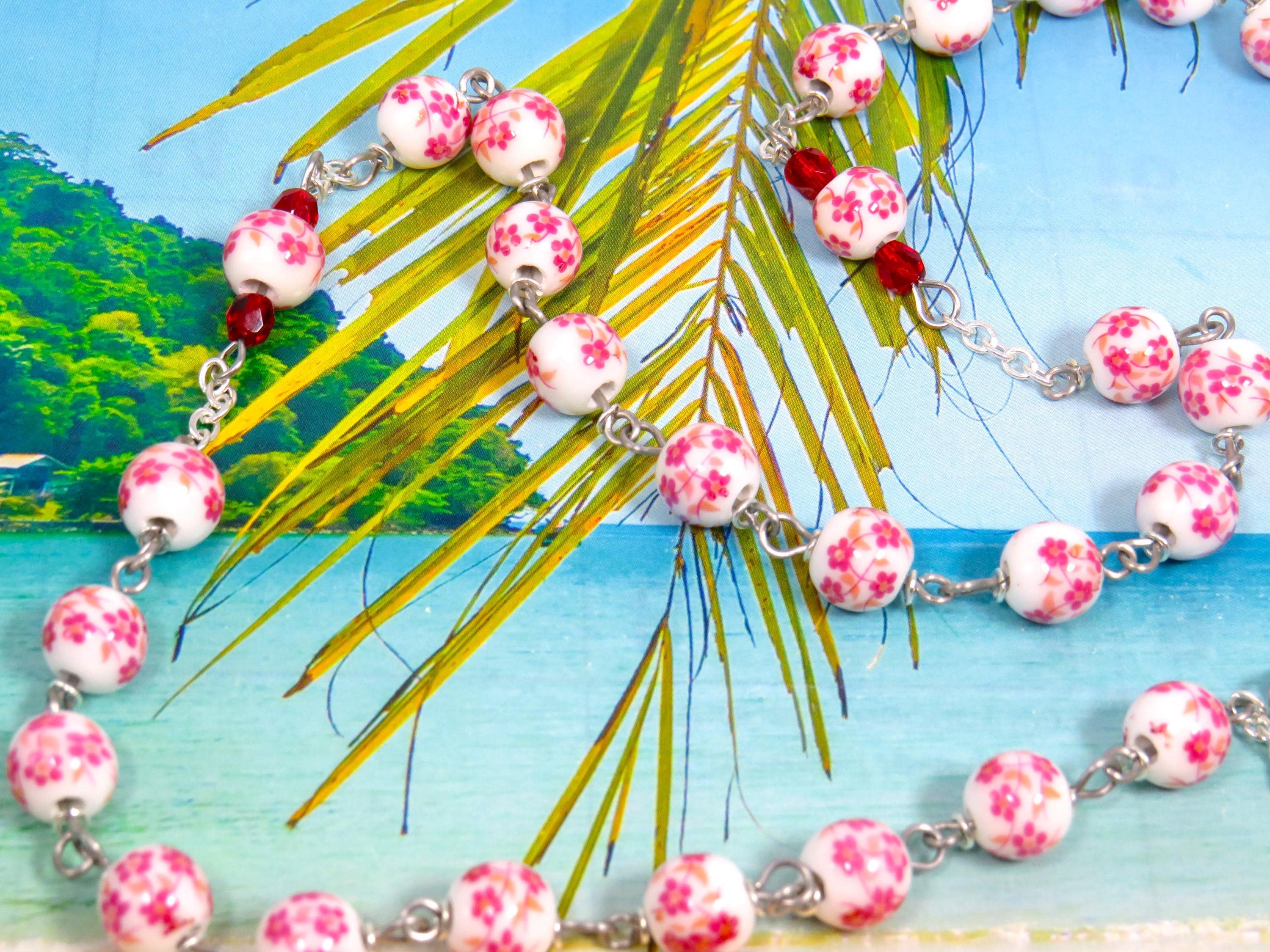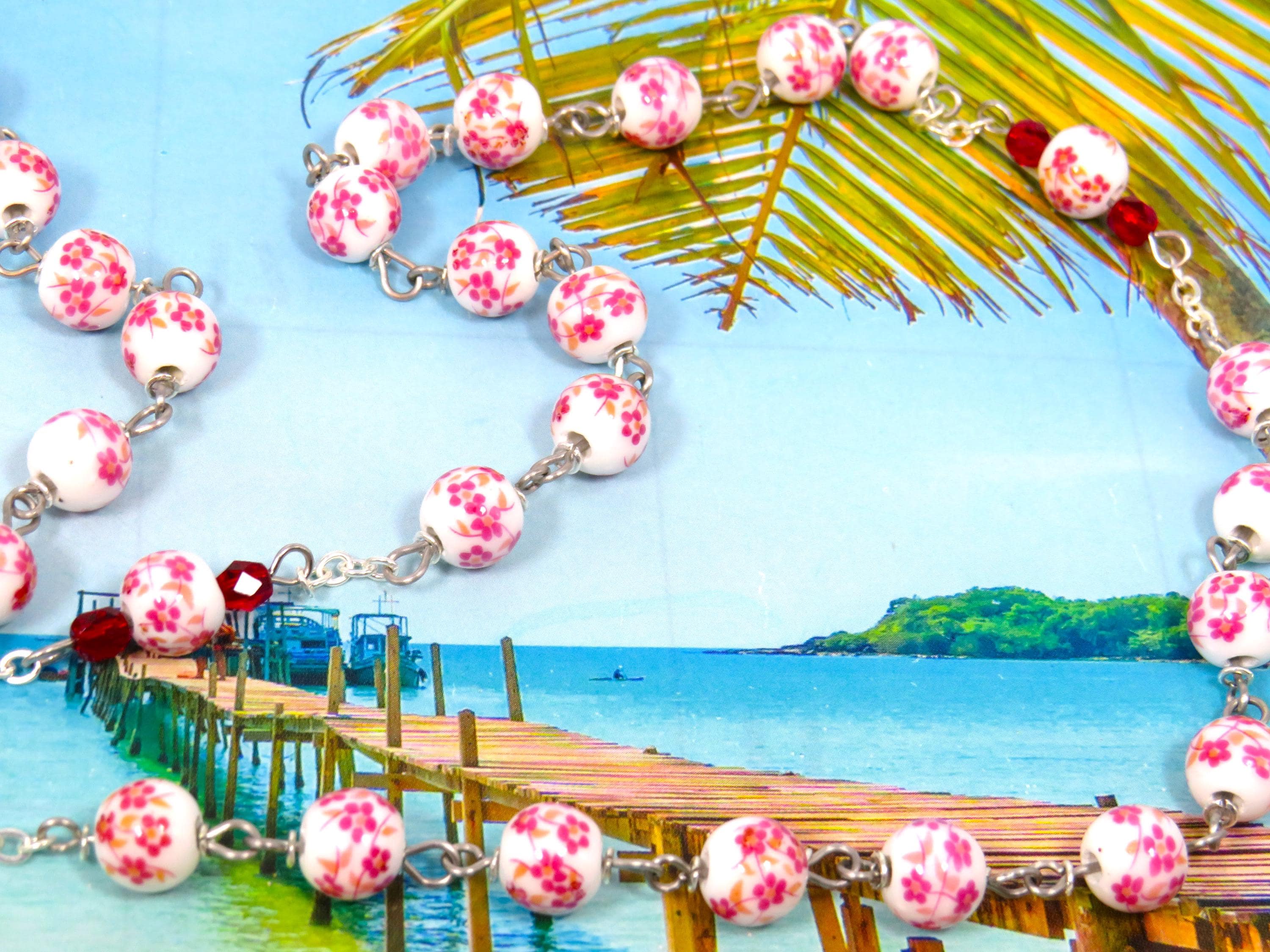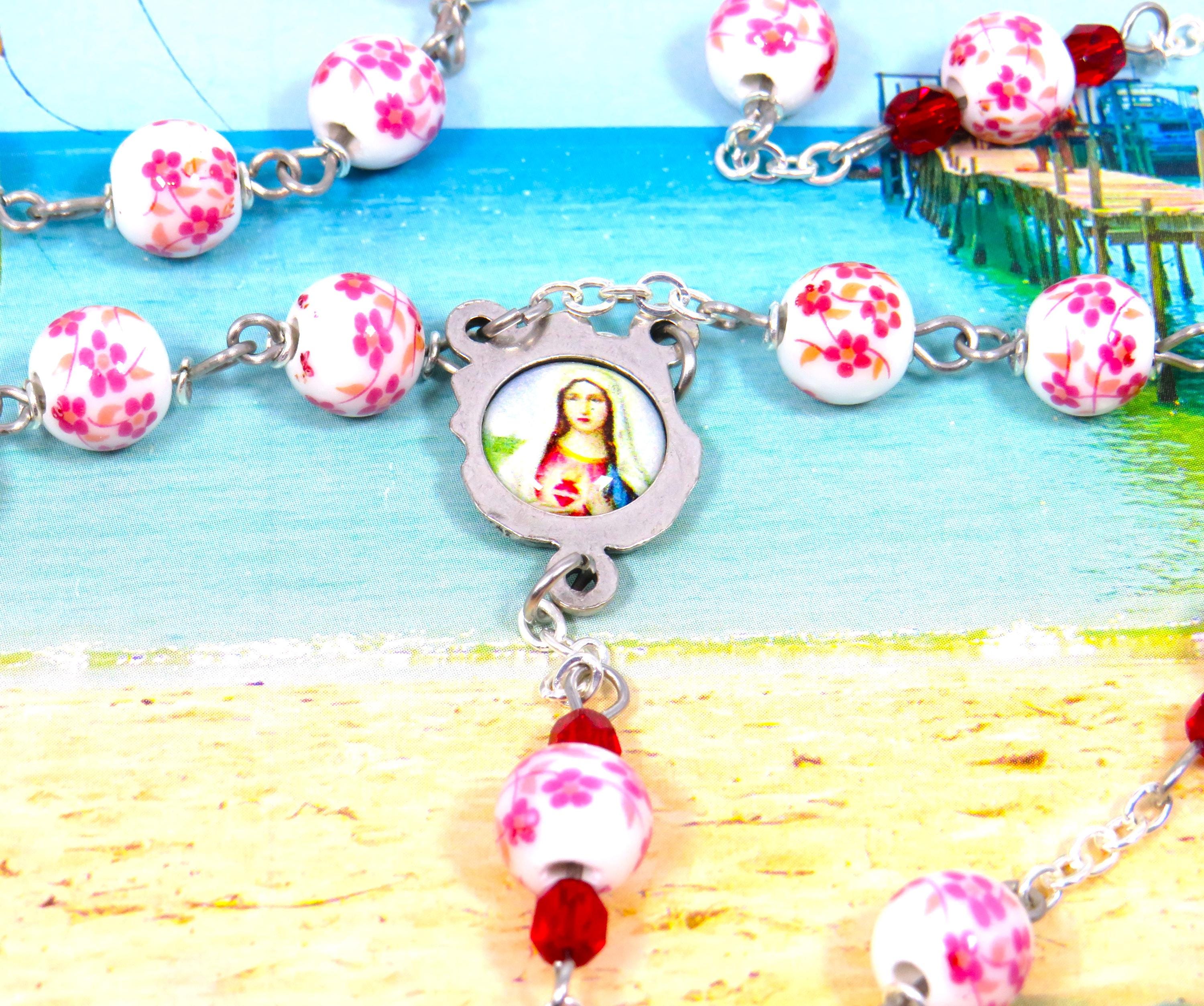 *White and Ruby Rose Flower Ceramic 8mm Beads